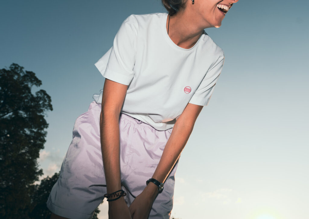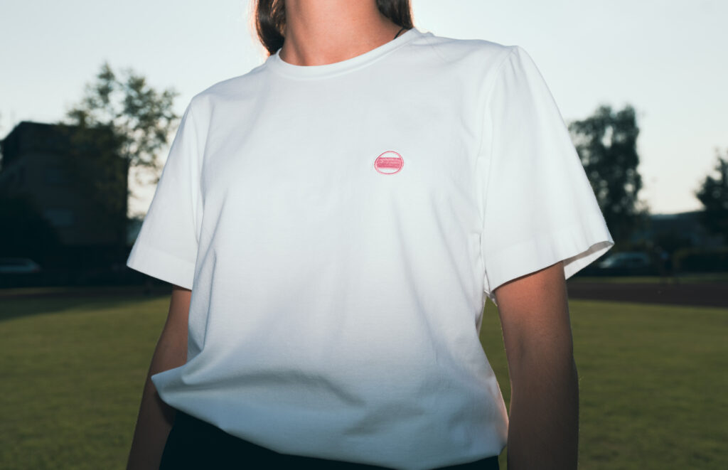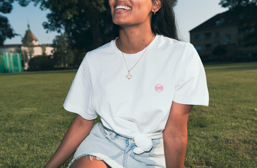 Ein Liibli in weiss mit aufgesticktem Logo, das du zu allem tragen kannst und dich an die Dinge erinnern soll, die dir freud machen.