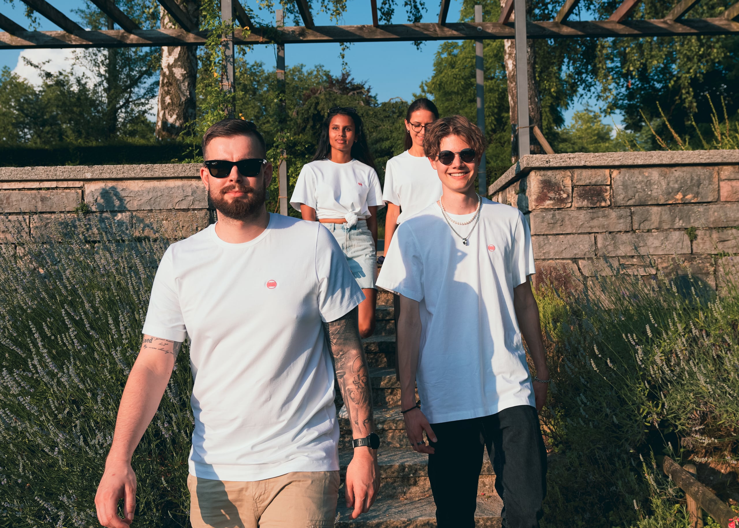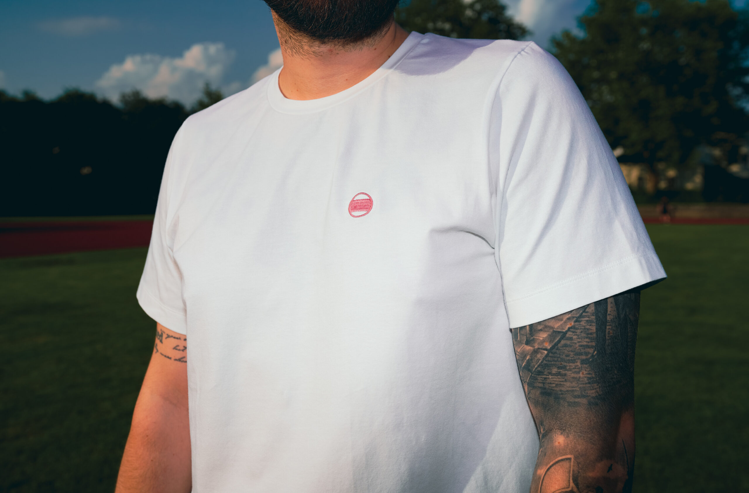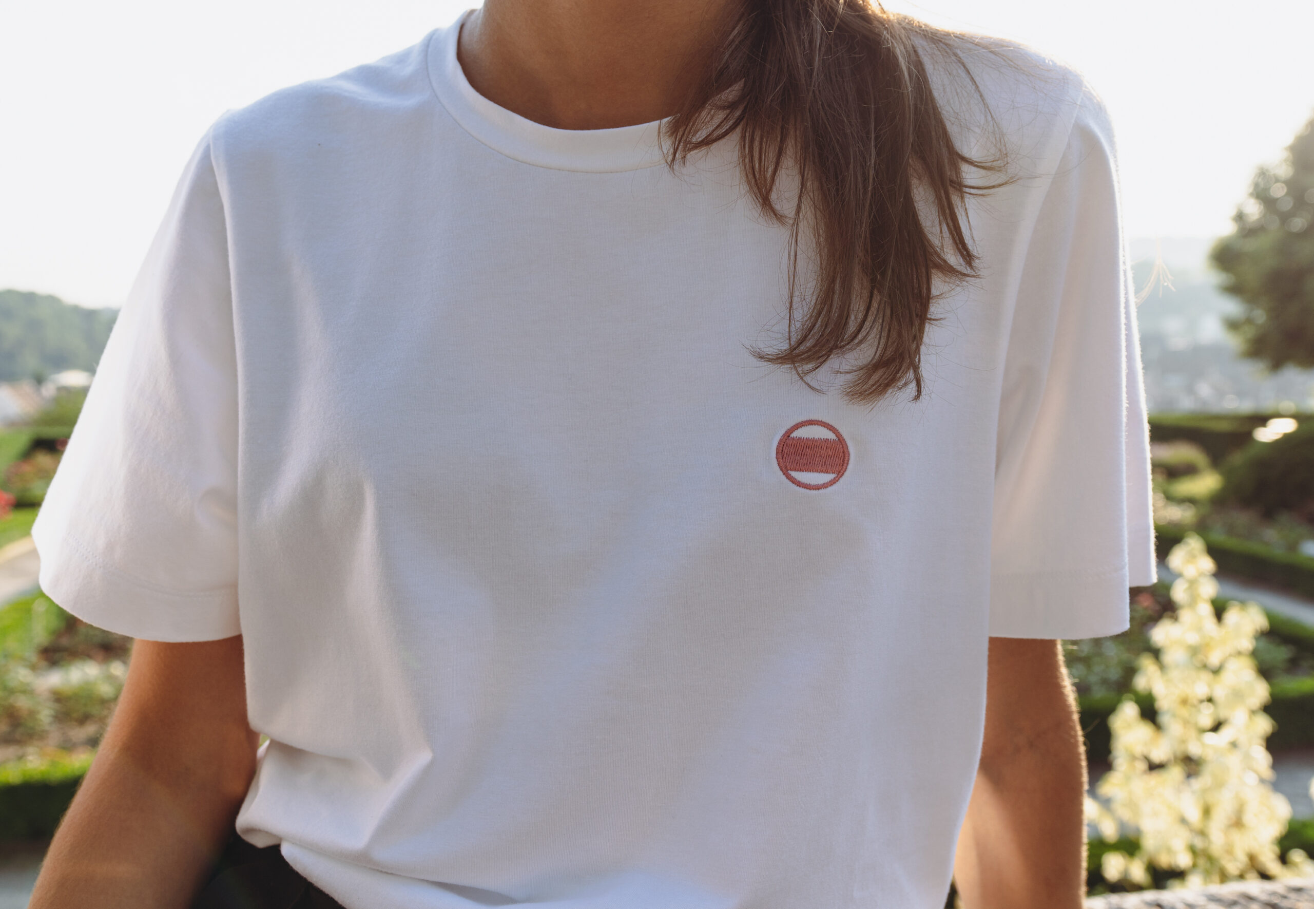 Ein Liibli in weiss mit aufgesticktem Logo, das du zu allem tragen kannst und dich an die Dinge erinnern soll, die dir freud machen.